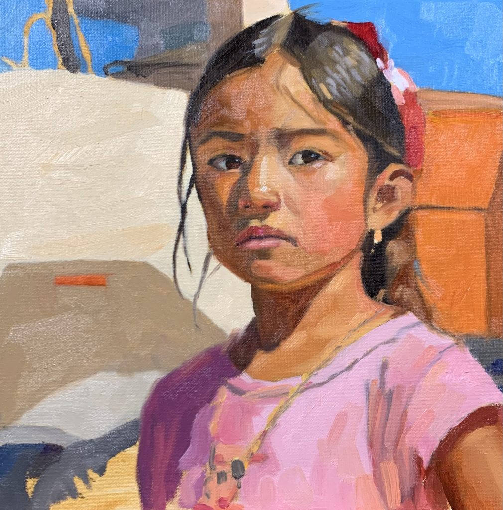Moving into an area of these paintings where the intention is to show people in a slightly more contemporary environment. That still just means abstract blocks of colors. This time the space is industrial and open. Focusing on warm colors. A warm sun.