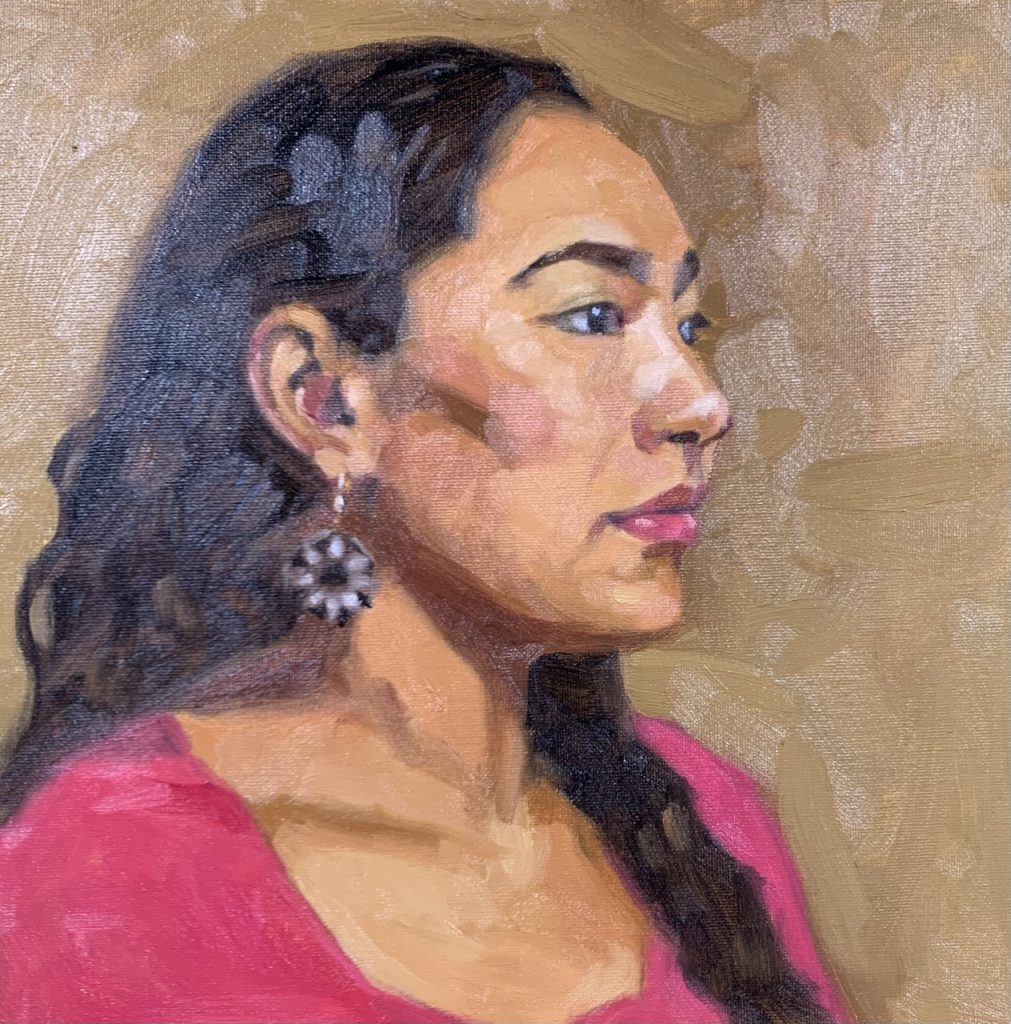When I originally painted this portrait of Coral Dawn Bernal during a weekend painting session in Taos back in 2014, I never imagined the journey it would take. The original was painted from life on a small board, capturing a clumsy snippet of Coral’s calm strength, gentle spirit, and personality. Tragically, that original painting was lost to a sudden overnight micro rainstorm; by morning, it was nothing but mush, a not-so-great moment for any artist.