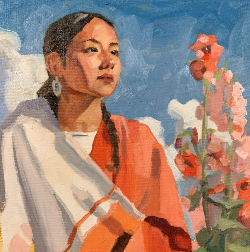 I’ve painted hollyhocks more than once. They show up in the background of portraits, in quick plein air studies, sometimes even just as a suggestion of color near a window or doorway. Each time, they carry that same gentle reminder of time, place, and change. And always, of home.