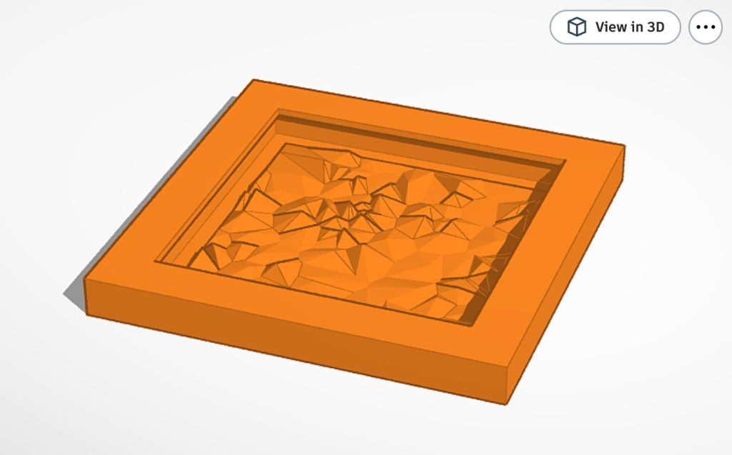 Spending a bit of time thinking about edge lighting paintings. Essentially, my frames include a channel that houses a LED strip with addressable pixels. I would animate flickering candles or an sunrise lighting experience. At the moment I am printing a textured surface that MAY have lights and shadows reacting in fun ways. I expect the individual lights to cast diverging color shadows and highlights across the randomized angular texture.